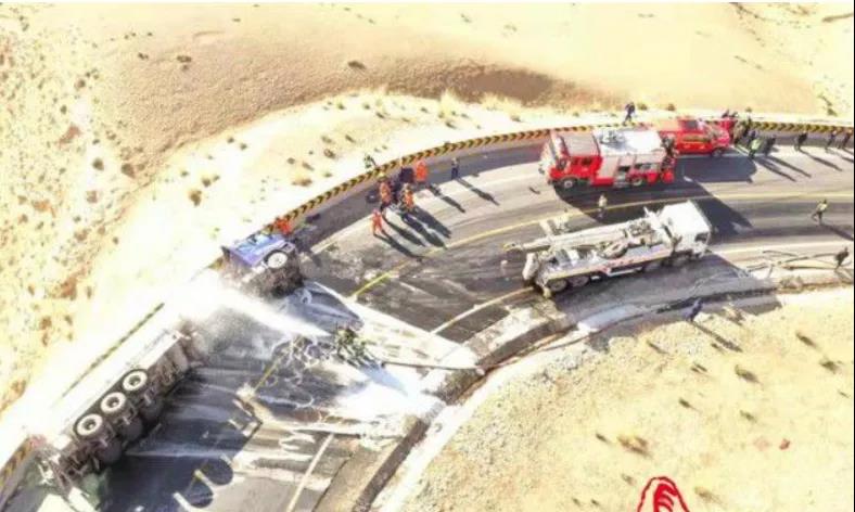 3月11日15時(shí),青海省海南州消防救援支隊(duì)接到報(bào)警稱:海南州共和縣109國道一滿載柴油的油罐車側(cè)翻,油品泄漏,司機(jī)被困。接到報(bào)警后,當(dāng)?shù)叵啦块T迅速趕赴現(xiàn)場處置。