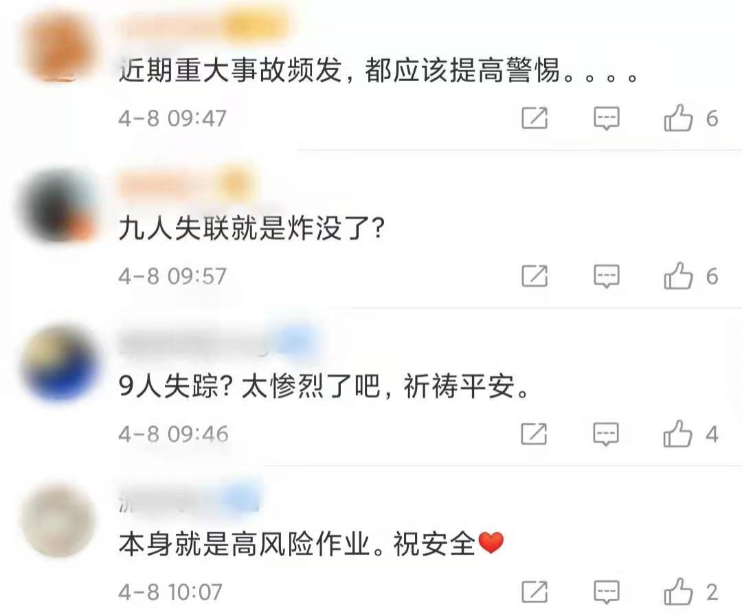 4月8日晚8時許,記者從一名失聯(lián)人員親屬處了解到,失聯(lián)人員搜救工作已經(jīng)基本結(jié)束,9名失聯(lián)人員已確認(rèn)遇難。
