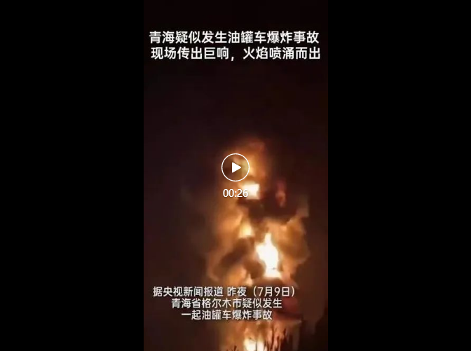7月9日,青海省格爾木市疑似發(fā)生一起油罐車(chē)爆炸事故。據(jù)了解,爆炸造成2人受傷,傷者生命體征平穩(wěn),目前無(wú)人員死亡。 總臺(tái)記者已到達(dá)事故現(xiàn)場(chǎng),事故發(fā)生于青海省格爾木市G109國(guó)道與東海路交叉口向北約200米處,F(xiàn)場(chǎng)火勢(shì)已經(jīng)撲滅,空氣中彌漫著刺鼻的味道,可以看到三輛殘缺不全的罐車(chē)殘骸,一旁瑞城工業(yè)園的側(cè)門(mén)也在爆炸中被炸毀。