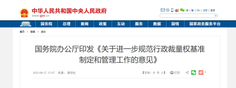 8月17日,國務院辦公廳發(fā)布《關于進一步規(guī)范行政裁量權基準制定和管理工作的意見》,提出各級政府及其部門要堅決避免亂罰款,嚴格禁止以罰款進行創(chuàng)收,嚴格禁止以罰款數(shù)額進行排名或者作為績效考核的指標。