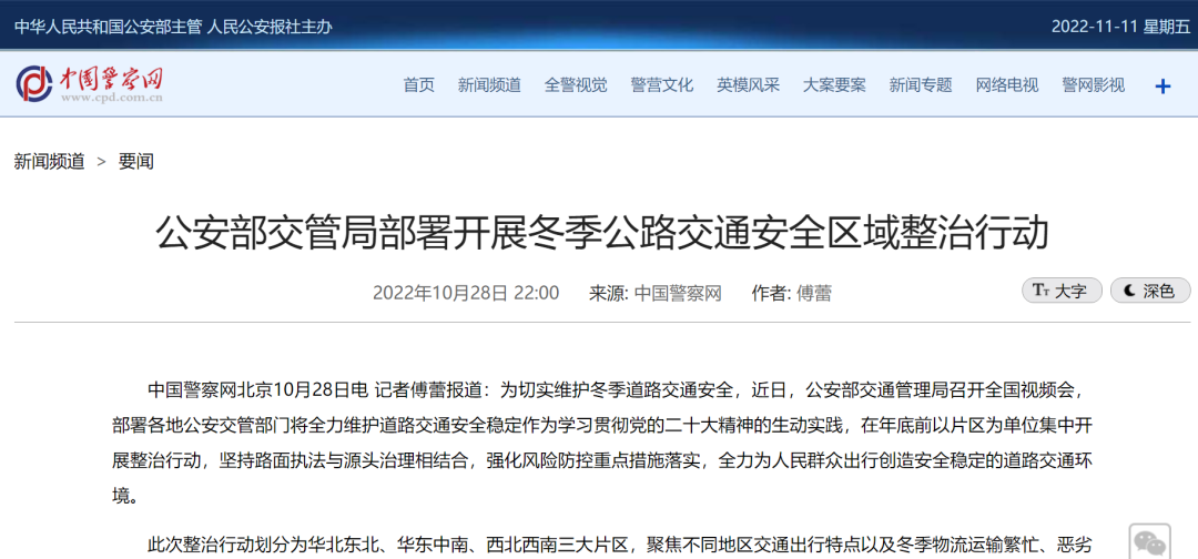 此次整治行動劃分為華北東北、華東中南、西北西南三大片區(qū),聚焦不同地區(qū)交通出行特點以及冬季物流運輸繁忙、惡劣天氣頻發(fā)、農(nóng)村出行隱患、疫情防控等方面交通安全風險,有針對性地強化事故風險防范措施,重點整治“兩客一危一貨”超速、超載、疲勞駕駛等交通違法行為。