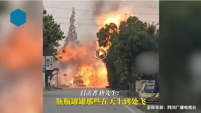 4月9日下午,四川德陽市旌陽區(qū)東湖街道大地村境內(nèi),一輛運(yùn)送液化氣罐的;奋囕v發(fā)生起火爆炸。 據(jù)附近目擊者介紹,9日下午3時(shí)左右,一輛運(yùn)送液化氣罐的貨車起火后,駕駛員棄車逃生,車上的氣罐隨后發(fā)生爆炸,有些被炸飛,“先后聽到十多聲爆炸聲”,周圍村民家的玻璃被震爛了不少。 “火很大,太嚇人了!”該目擊者稱,剛開始還有人在遠(yuǎn)處拍攝,發(fā)生爆炸后,拍攝者連忙離開了現(xiàn)場(chǎng)。隨后,民警、消防員、120醫(yī)務(wù)人員趕到,民警立即對(duì)現(xiàn)場(chǎng)進(jìn)行臨時(shí)管制,消防員隨后將火撲滅。 從參與救援的人員處獲悉,該起事故未造成人員傷亡。目前,起火原因正在進(jìn)一步調(diào)查中。