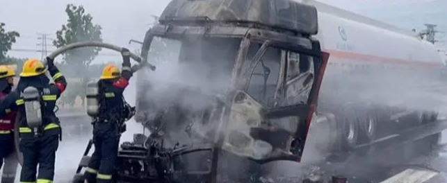 6月4日12時(shí)57分左右,江蘇淮安市消防指揮中心接到報(bào)警稱,位于淮安市洪澤區(qū)朱壩鎮(zhèn)往南京方向,危化品運(yùn)輸車追尾起火。 接到報(bào)警后,淮安消防支隊(duì)立即調(diào)派洪澤區(qū)大隊(duì)高良澗消防救援站3車14人趕赴現(xiàn)場(chǎng)處置。高良澗消防救援站到達(dá)現(xiàn)場(chǎng)后發(fā)現(xiàn),現(xiàn)場(chǎng)事故為;愤\(yùn)輸車追尾半掛車,;愤\(yùn)輸車車頭著火并冒出黑煙,駕駛?cè)藛T通過車載滅火器嘗試將火撲滅未果。 經(jīng)現(xiàn)場(chǎng)勘察了解,;愤\(yùn)輸車裝載的液體為汽油,被追尾半掛車裝載的是造紙材料,發(fā)現(xiàn)后車著火后時(shí)及時(shí)駛離現(xiàn)場(chǎng)。指揮員立即指揮,開展火災(zāi)撲救工作,一組出水槍,重點(diǎn)對(duì)著火的車頭部位進(jìn)行滅火;另外一組出水槍對(duì)后部槽罐進(jìn)行冷卻降溫,保障罐體安全。經(jīng)過緊張救援,成功將明火撲滅。 據(jù);奋囻{駛員介紹,他的車上裝有32噸多汽油芳烴,在信號(hào)燈處,他與前方等綠燈通行的半掛車有一段距離,覺得剎車可以剎住,剎車時(shí)發(fā)現(xiàn)剎車失靈,直接與前車追尾,車前冒黑煙,他下車拿滅火器發(fā)現(xiàn)撲滅不了。