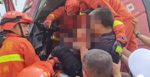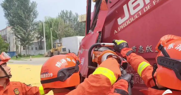 8月7日13時(shí)32分,在濱州鄒平市魏橋鎮(zhèn)金橋大道發(fā)生一起油罐車(chē)相撞事故,情況緊急,急需救援。消防救援人員到達(dá)現(xiàn)場(chǎng)后看到,事故發(fā)生在一個(gè)十字路口,由南向北行駛的油罐車(chē)撞上由西向東正常行駛的半掛車(chē)車(chē)廂,導(dǎo)致半掛車(chē)車(chē)廂側(cè)翻,車(chē)廂內(nèi)玉米傾瀉一地,油罐車(chē)駕駛室嚴(yán)重變形,駕駛員頭部鮮血淋漓,雙腿被卡在駕駛室內(nèi)無(wú)法脫困。