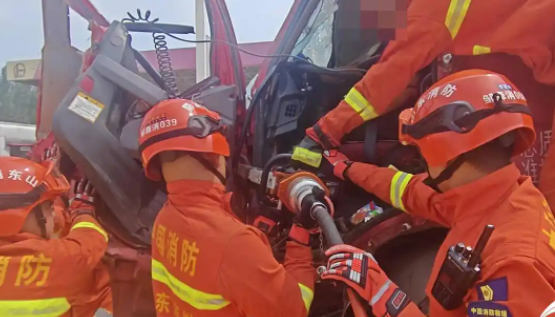 經(jīng)過(guò)10分鐘的緊張救援,消防救援人員將司機(jī)被卡的雙腿成功抽出,抬上救護(hù)車(chē)送往醫(yī)院。