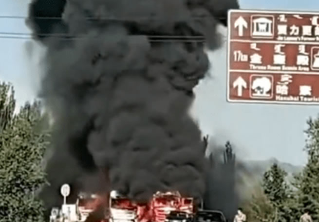 8月16日,呼和浩特市土默特左旗一輛重型;饭捃嚺c多車相撞,發(fā)生爆燃,事故造成2人死亡,5人受傷。視頻顯示,至少有三輛大車并排停在公路上,車身起火冒起濃煙,路牌顯示事故地點距離賈力更故居15公里。拍攝者身處一片草叢中,遠處火焰熊熊燃燒,黑煙漫天,同時傳出爆炸聲響。據(jù)@平安青城通...